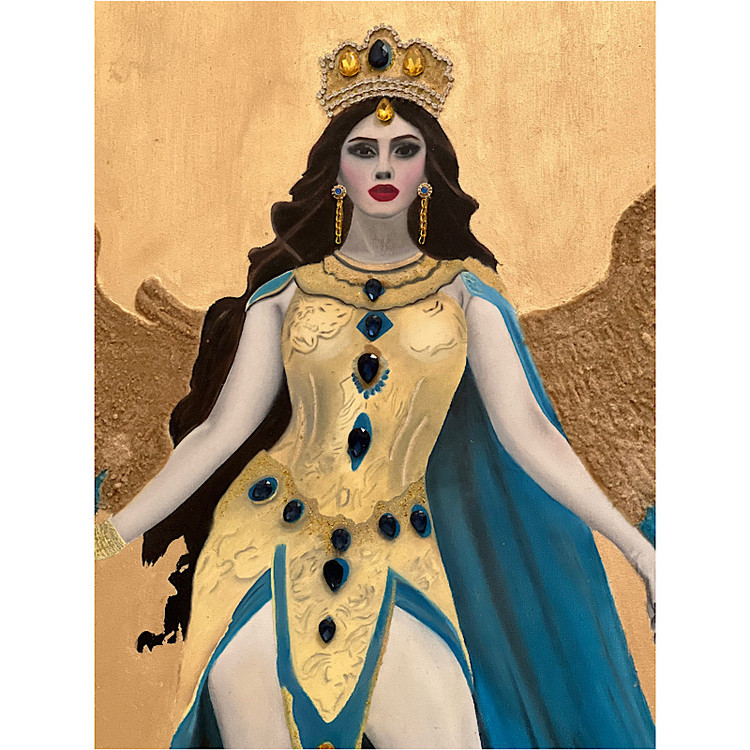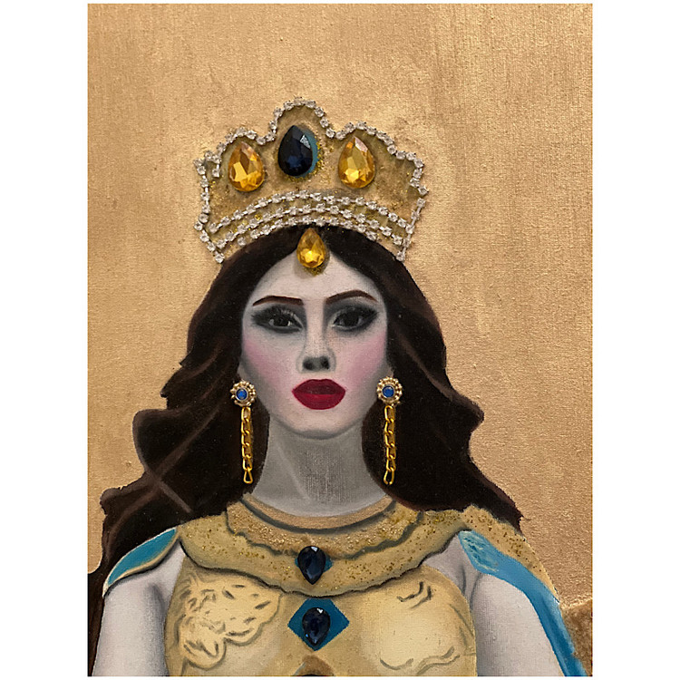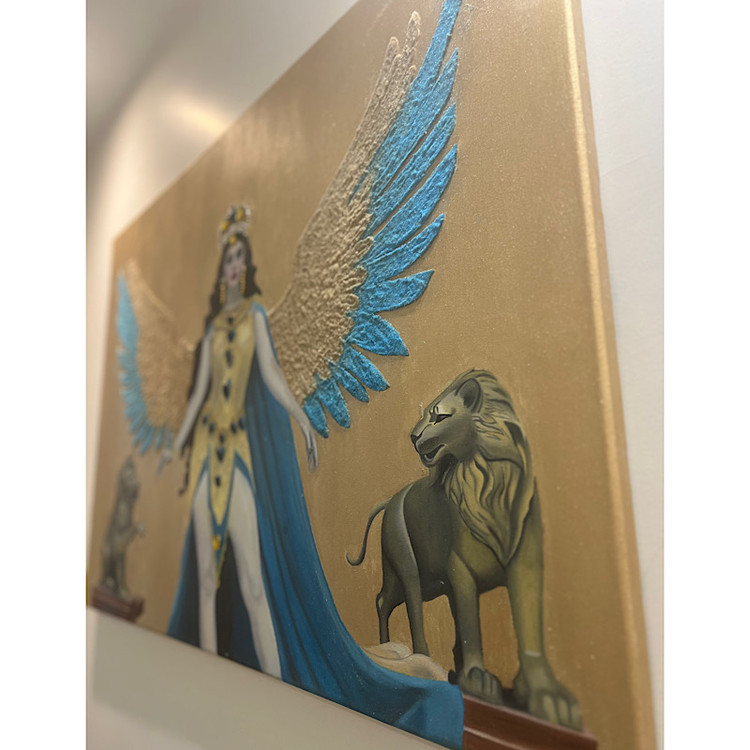 تابلو دکوراتیو کاردست رنگ و روغن و ورق طلا، بانوی شیرها