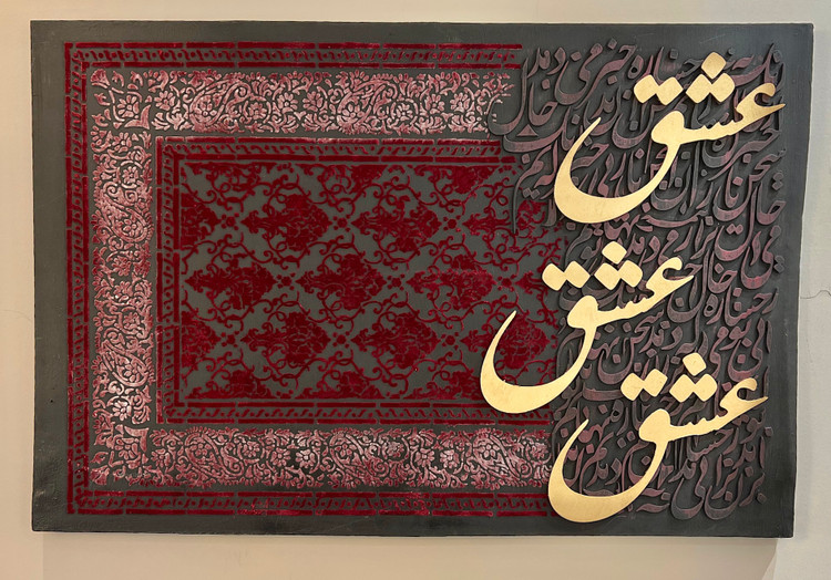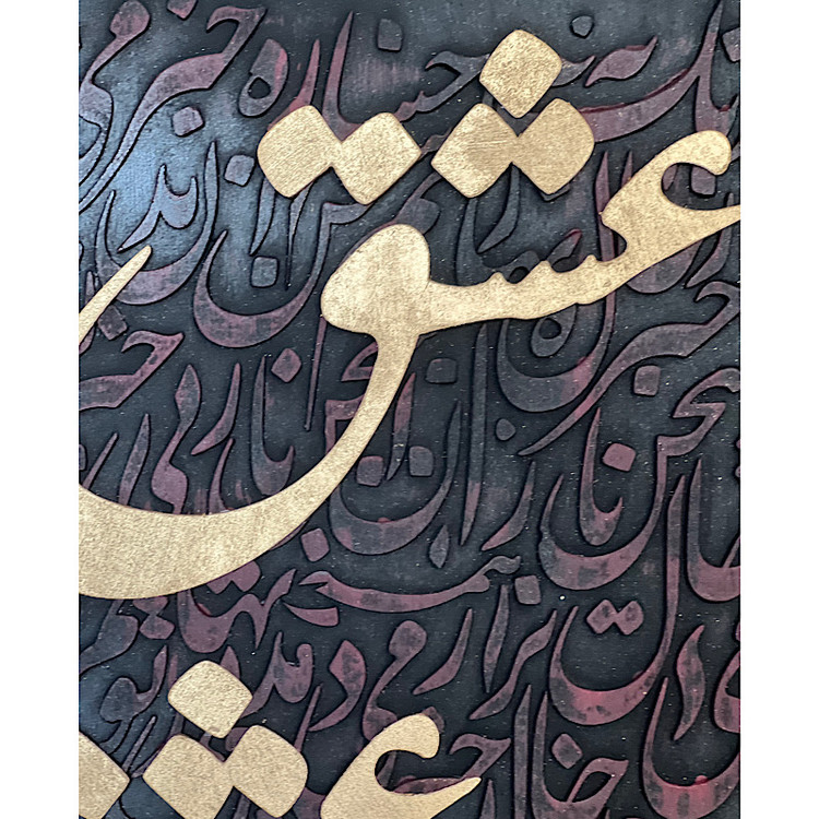 تابلوی دستساز عشق طرح فرش | طلایی و مخملی